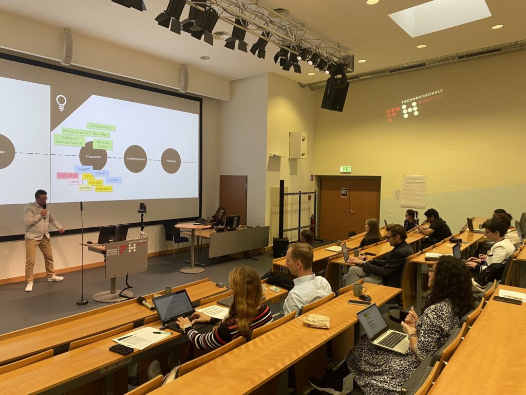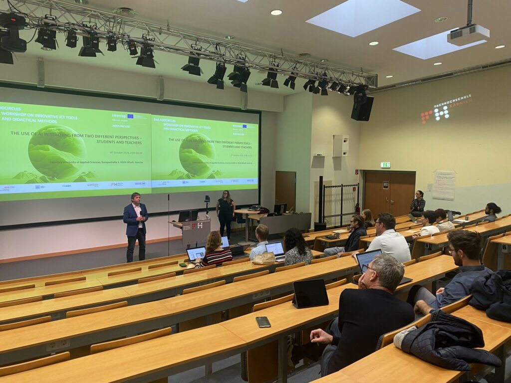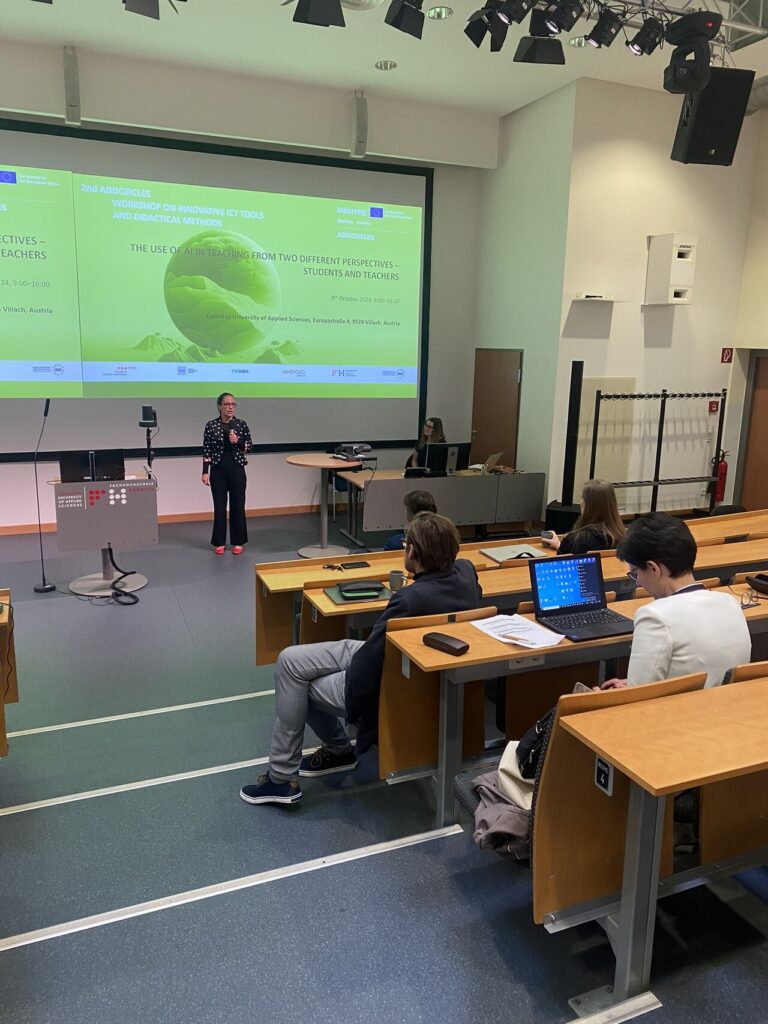 The second workshop, titled “The Use of AI in Teaching from Two Different Perspectives – Students and Teachers,” was organized on October 8, 2024, at CUAS in Villach, Austria. The main objective of the workshop was to offer up-to-date insights on the use of AI in teaching from the perspectives of both teachers and students. They discussed the use of AI in the classroom on an equal footing and presented their unique experiences and perspectives.